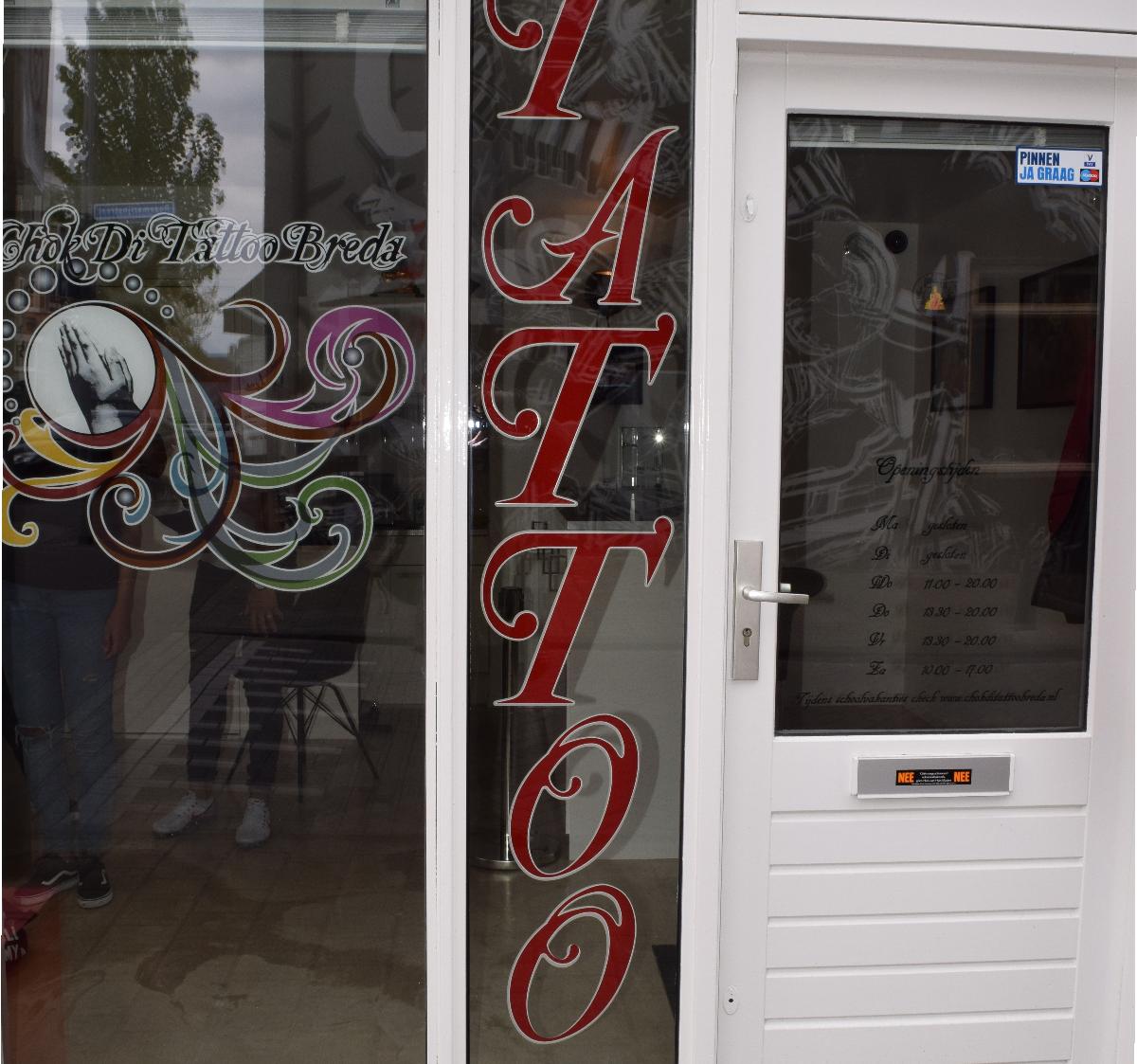 Chok di tattoo is een tattooshop in het centrum van Breda. Kae is een startende ondernemer en een passionele Thaise tatoeëerder. Na een intakegesprek en analyse van zijn bedrijf heb ik een adviesrapport voor Chok di Tattoo geschreven. De shop was nauwelijks zichtbaar, in de breedste zin van het woord. Voorheen was alleen het logo, een afbeelding van 2 handen met gekleurde krullen erom heen, te zien op de 2 ramen van zijn shop. Het logo is in dit geval ondergeschikt aan het produkt wat je verkoopt of dienst die je verleent. Er is gekozen voor een belettering met groto rode letters 'TATTOO' op het raam. Dezelfde belettering is aangebracht op een 'door de wind draaiend' reclame bord. De shop ligt iets af van de doorgaande weg en daardoor niet goed zichtbaar. Door dit bord aan de doorgaande weg te zetten is de tattooshop beter zichtbaar. De shop instore was heel steriel, alles wit met alleen een tatoeëerstoel. Ook mede door het logo met de handen, had het hier ook om een nagelstudio kunnen gaan. Er is daarom gekozen voor meer tattoo beleving in de shop aan te brengen. Dit d.m.v. een 'storytelling photowall' met schitterende foto's van de eeuwenoude Thaise tatoeëer technieken door Boeddhistische monniken. Verder heeft Kae een zelfontworpen en gemaakt kunstobject aan de wand bevestigd van een tatoeëer machine. Zichtbaarheid in de breedste zin van het woord, dus ook zichtbaar zijn bij je doelgroep. Adverteren bij de kickboxschool waar Kae lid van is en je laten zien op social media was de volgende stap.