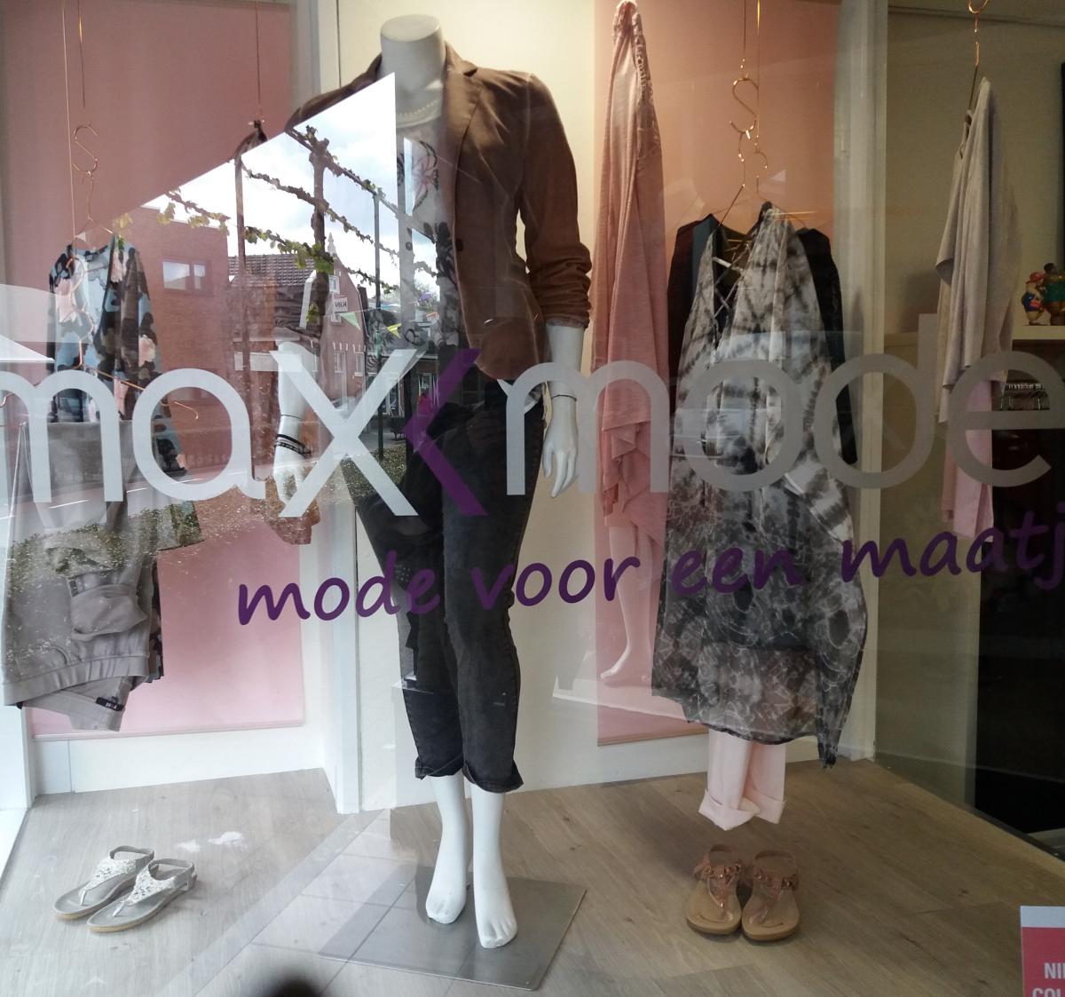 Etalages Maxx Mode, mode voor een maatje meer. Maxx Mode is een voorbeeld van een 'startende' ondernemer die gebruik maakt van het 2RESTYLE strippenkaartsysteem. Dit houdt in dat er vooraf een inschatting is gedaan op basis van aantal etalages en de grootte daarvan, betreft de hoeveelheid aan uren dat ze mij kunnen inzetten. Dit kan de ene keer zijn voor de etalages maar soms ook voor instore. Maxx mode heeft 2 etalage met in totaal 4 mannequins. Deze worden nu om de 6 weken vernieuwd. Ook is er regelmatig overleg over 'problemen' waar ze instore tegenaan lopen en worden er nieuwe vak indelingen geïntroduceerd met het oog op de overzichtelijkheid voor de klant. 2021 zijn ze verhuisd naar de overkant van de straat. Een hele mooie, grote winkel. Hier is er 1 etalage waar 3 figuren in staan.
